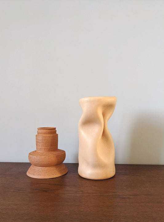 SHORT PETRIFIED LEATHER AND TERRACOTA VASE