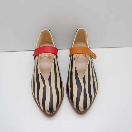 THE MARTA. REVERSE STRIPE. BB NORI W MISMATCHED STRAP FIESTA AND OCRE.