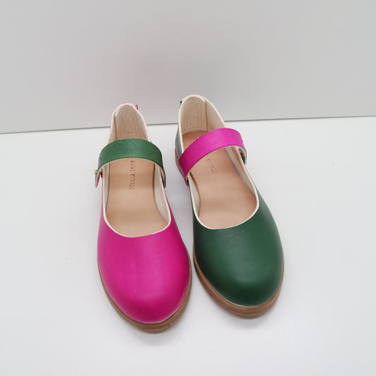 THE DEE DEE. MISMATCHED. RAMBUTAN PINK AND BUKO LEAF. CONTRAST STRAPS