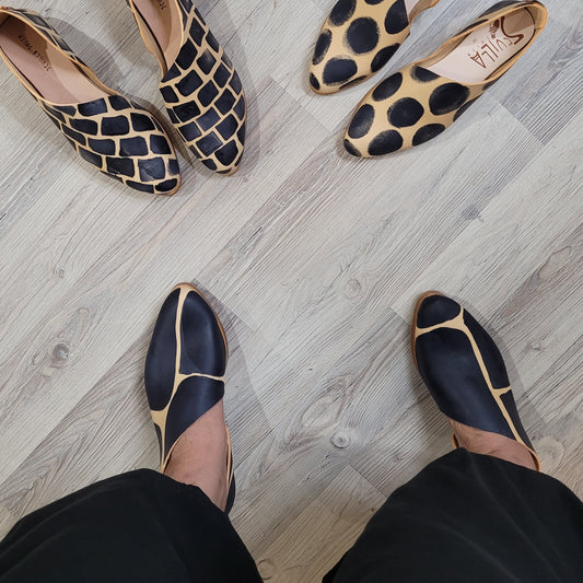 Our shoes are made to order. Should you like this style made in one of the current hand dyed colors or patterns (shown here) that you don't see below, simply let us know and we can make the shoes just for you by selecting a Custom Shoe Request