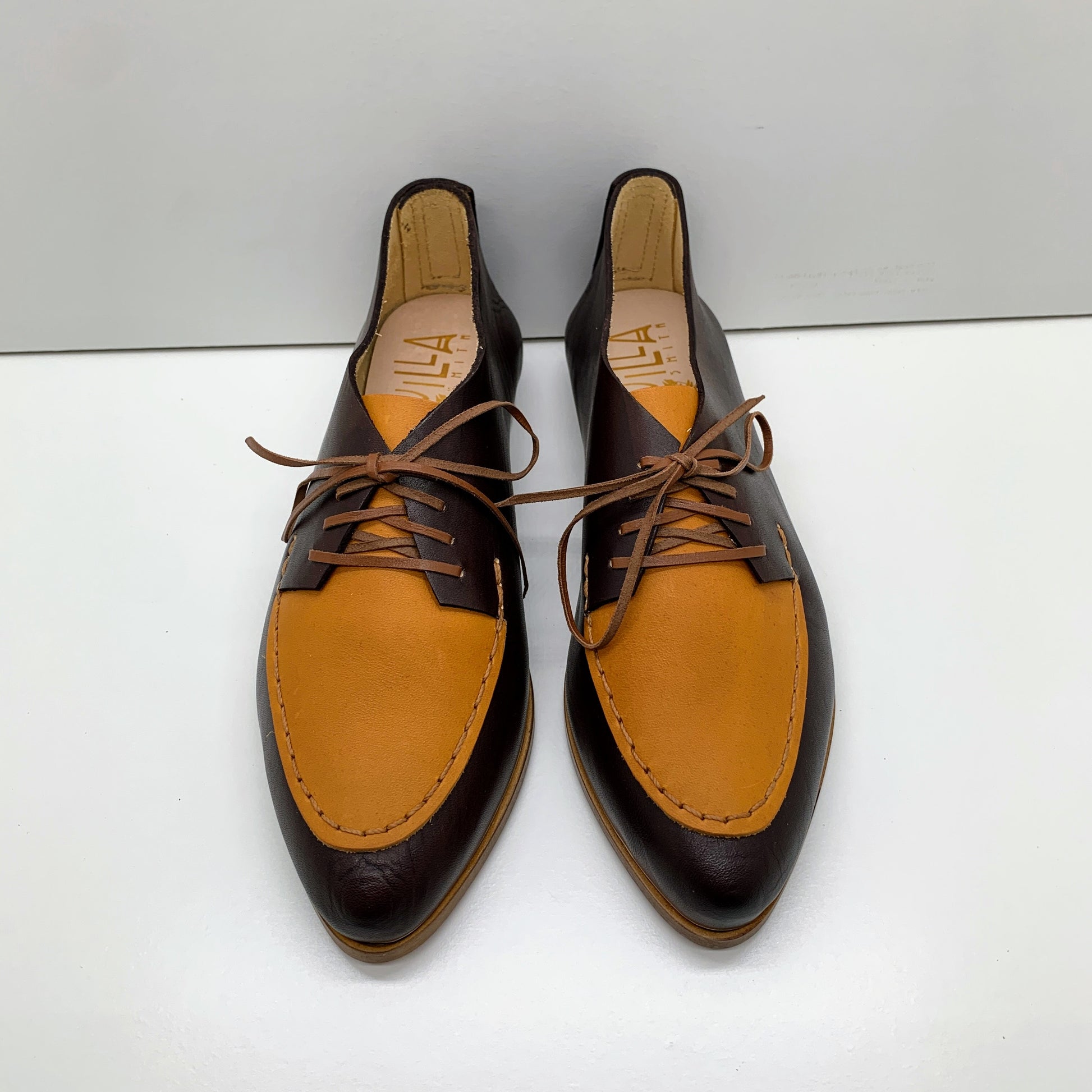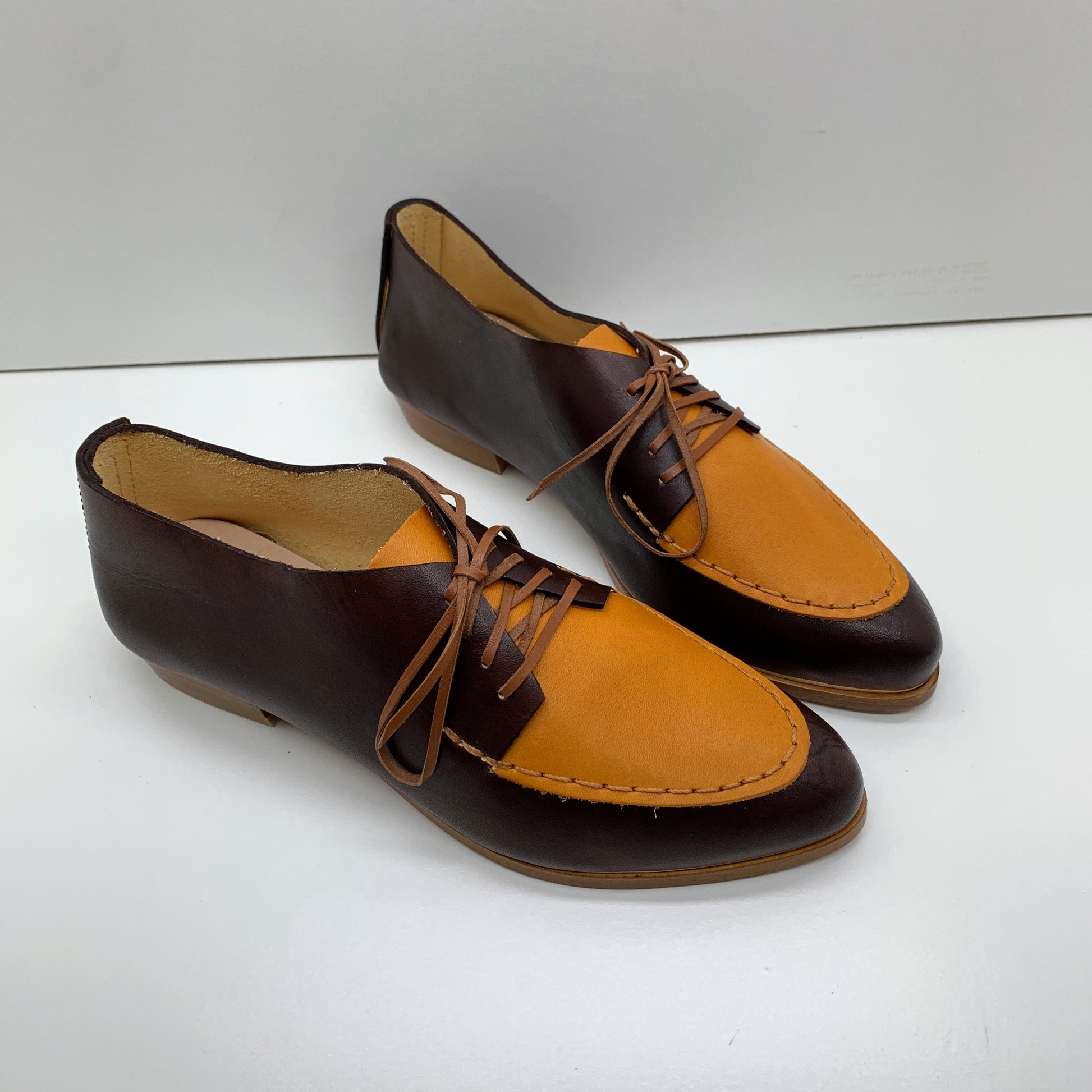 Our soles are sourced from a family run sole manufacturer in Portugal in an area reknowned as one of the shoemaking capitals in Europe. Our soles and heels are made of Italian vegetable tanned leather. The heels are stacked leather or wood, no hollow plastic core heels, and rubber slip resistance.