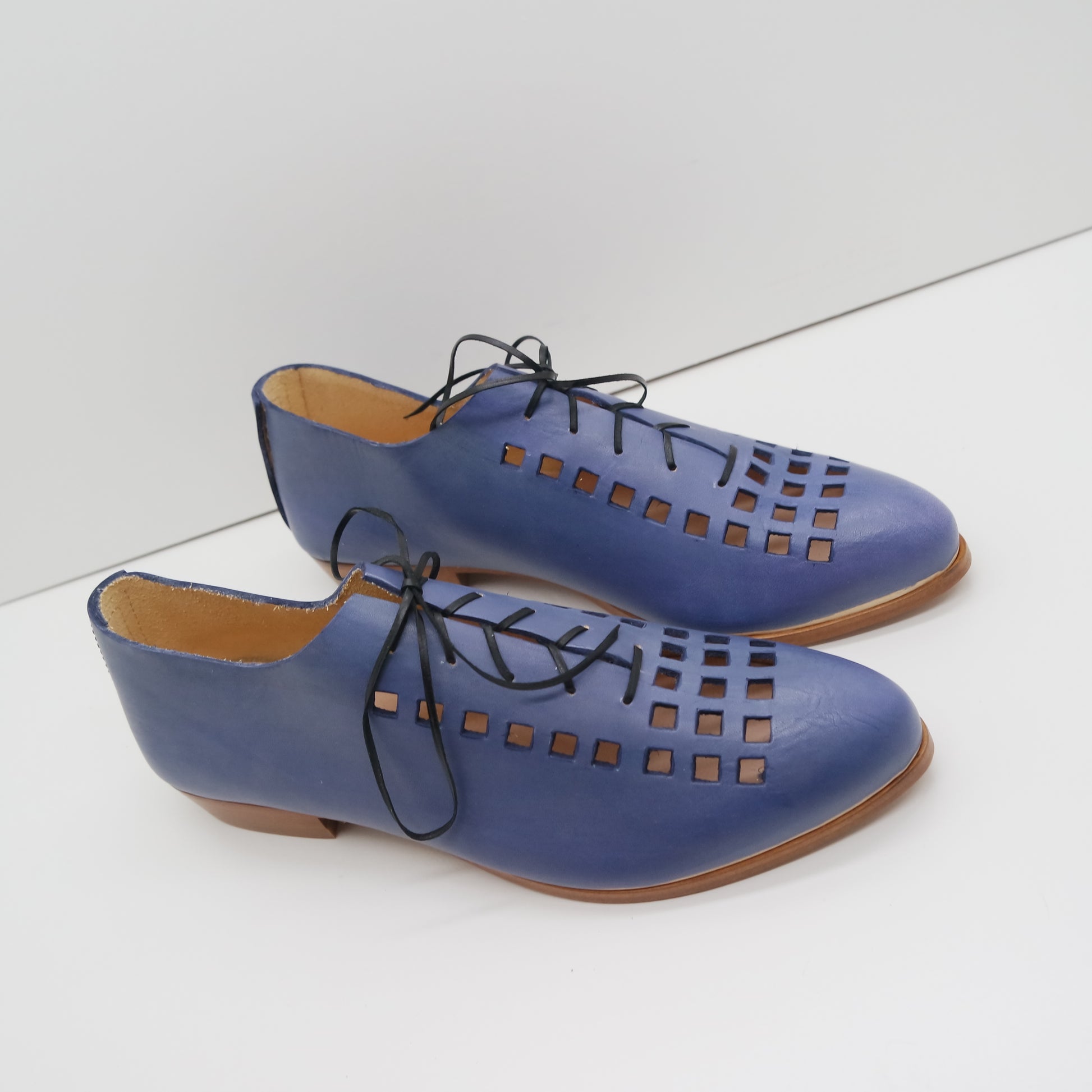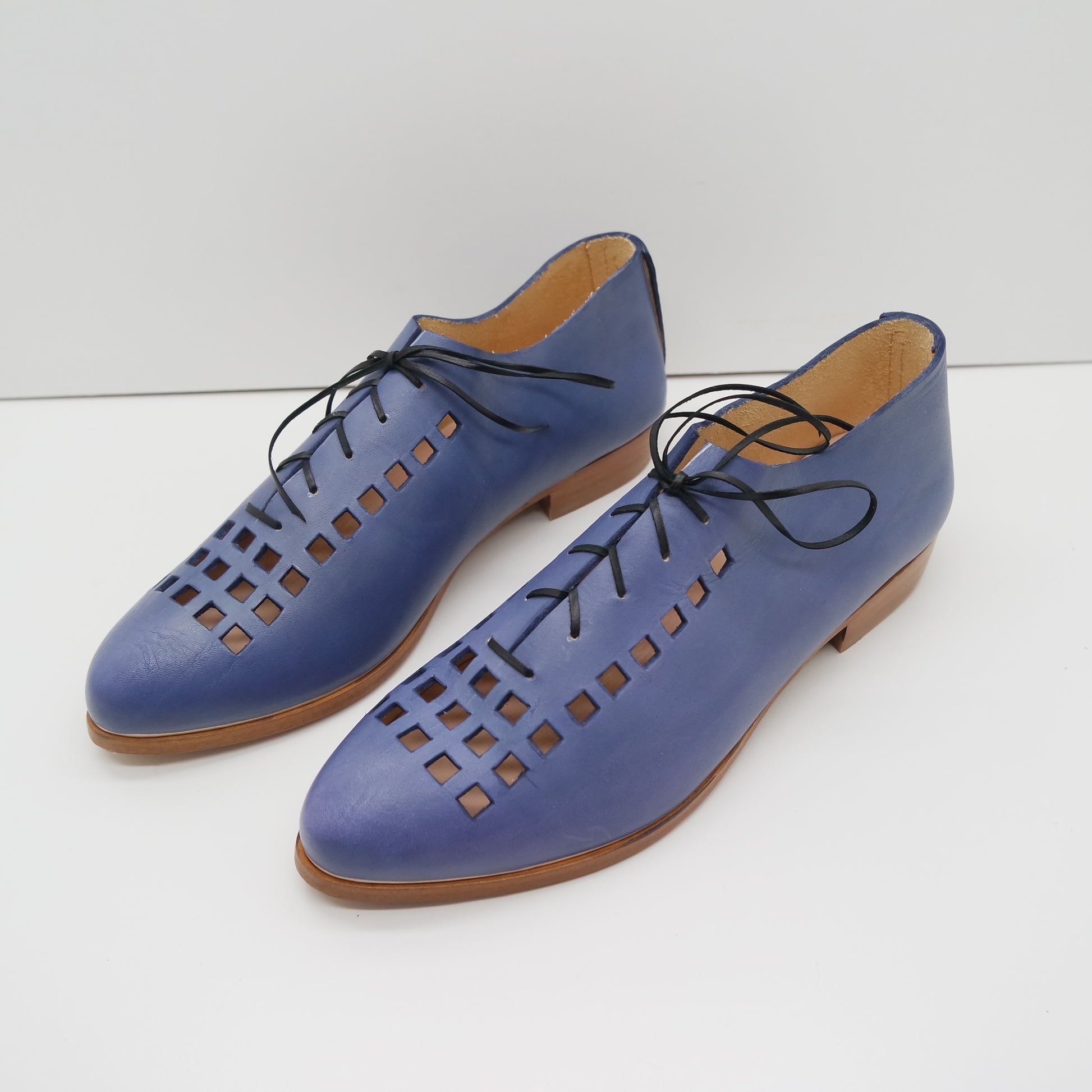 The Erica is a vented laceup for the best of all seasons. Wonderful with the bare feet of summer months, and amazing with colored tights in colder weather.