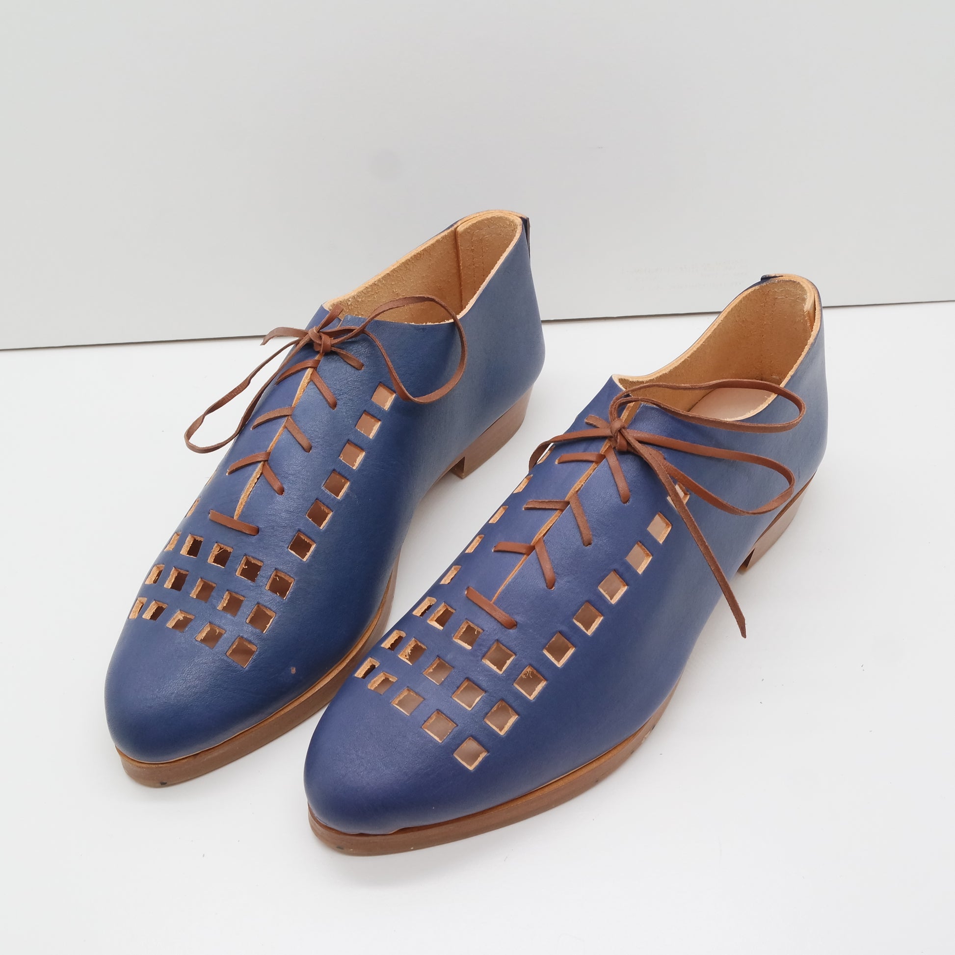 The Erica is a vented laceup for the best of all seasons. Wonderful with the bare feet of summer months, and amazing with colored tights in colder weather.