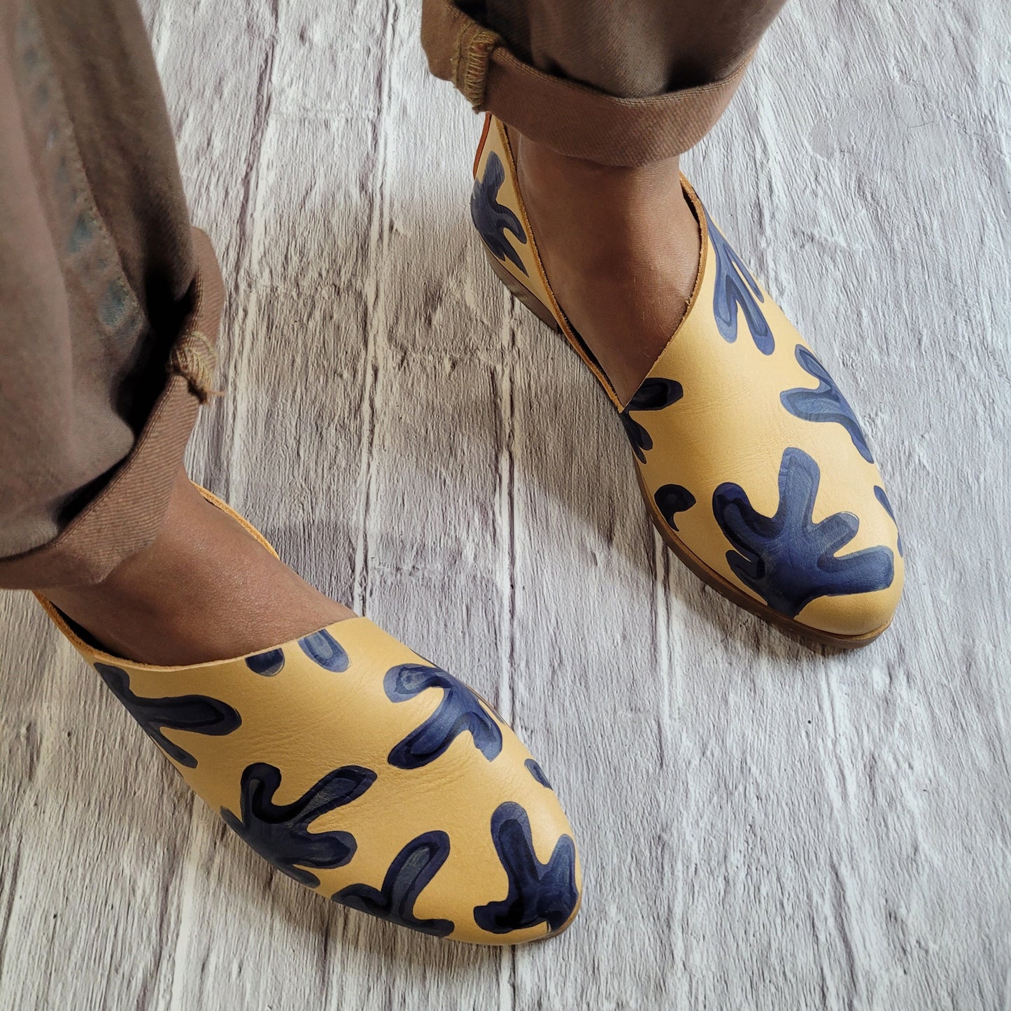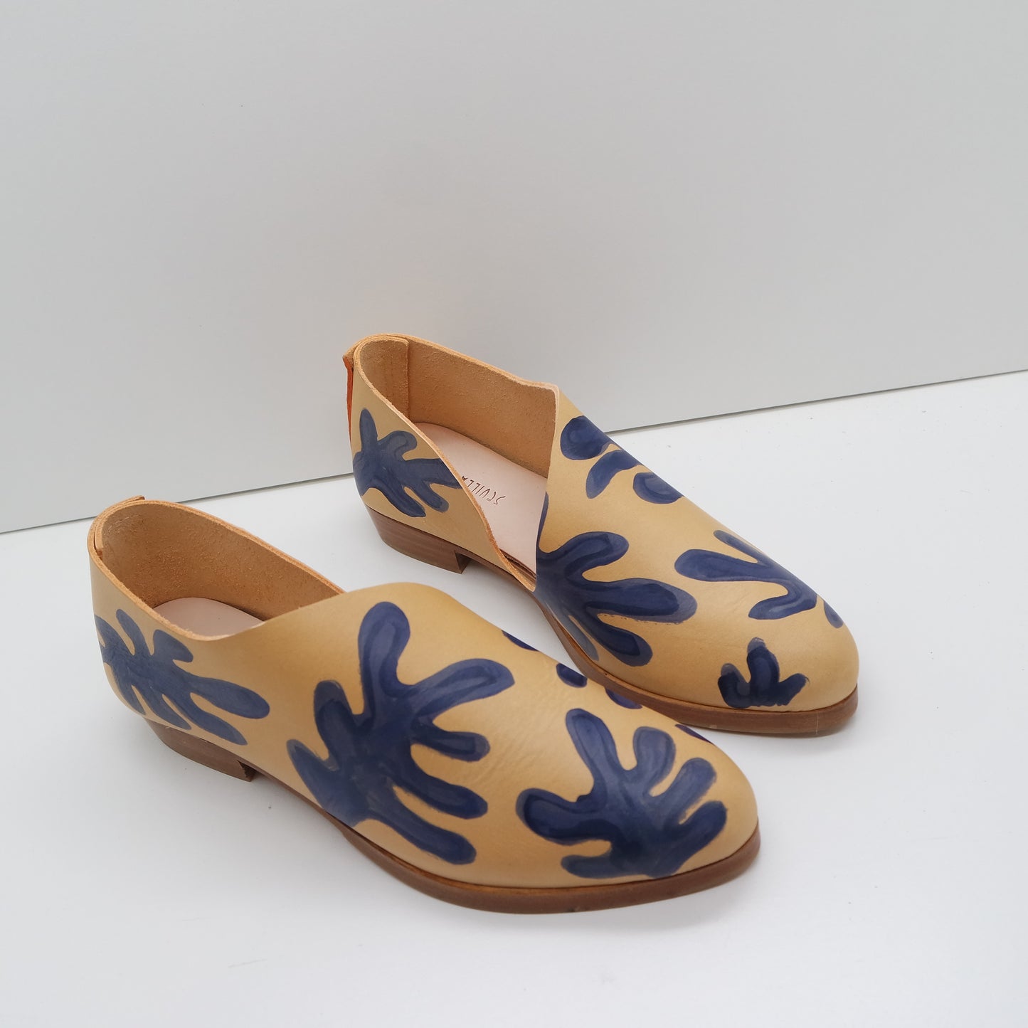 These shoes are hand cut and hand dyed, so variations are usual and we believe add to the uniqueness of a handmade shoe.