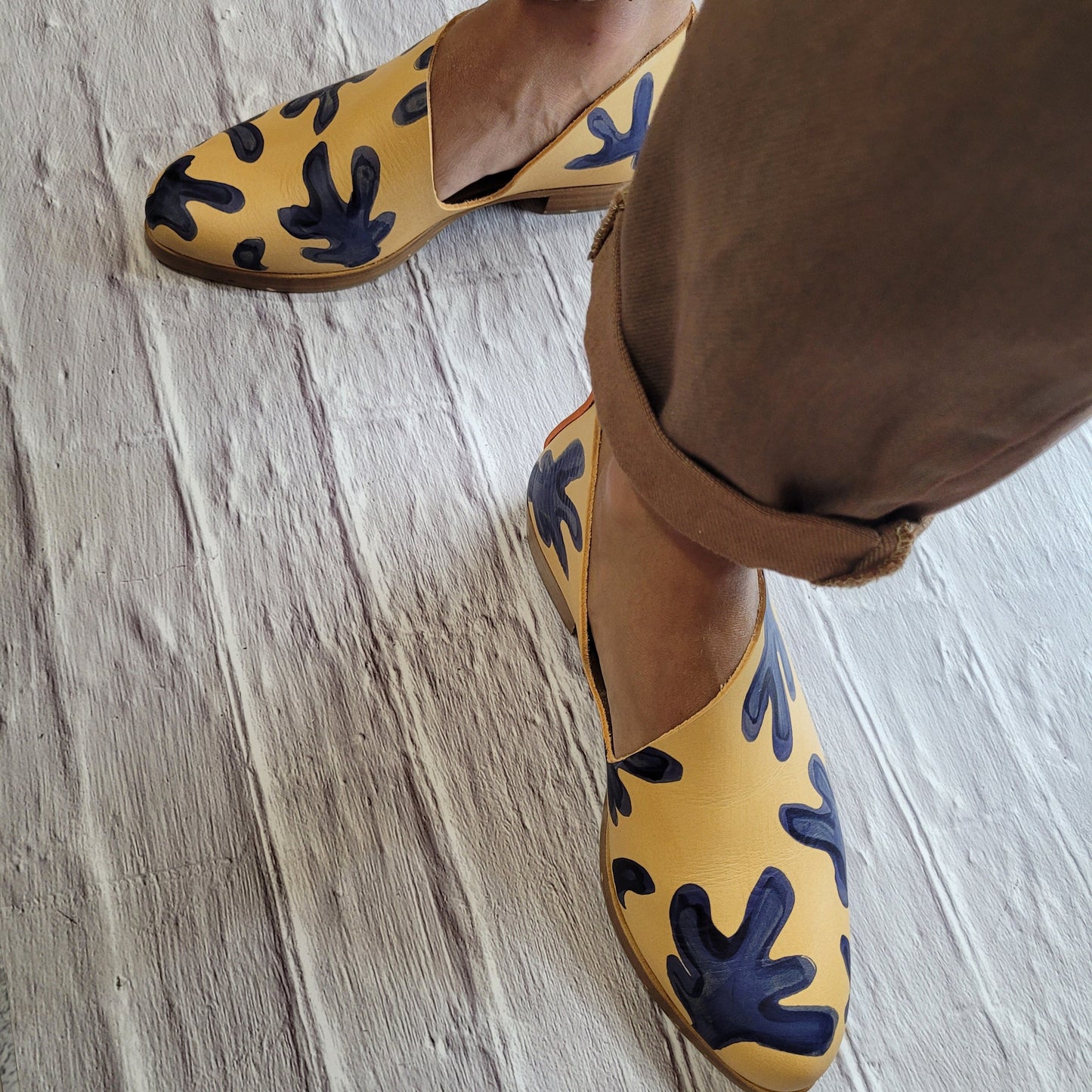 Love the Kim shoes! I purchased the giraffe design after seeing them in pictures and falling in love. They are every bit as great as I had hoped. I initially ordered a size too large, and Faye helped troubleshoot via email, so I returned for a size down and removed part of the foam for a wonderful fit. The customer service process was excellent, and the shoes are amazing! So much so that I added tamarind edge-dyed + toast-tamarind bubbles to my collection during the recent sale. Tamarind is a beautiful deep brown, and the bubbles may just be the funnest thing in my wardrobe.