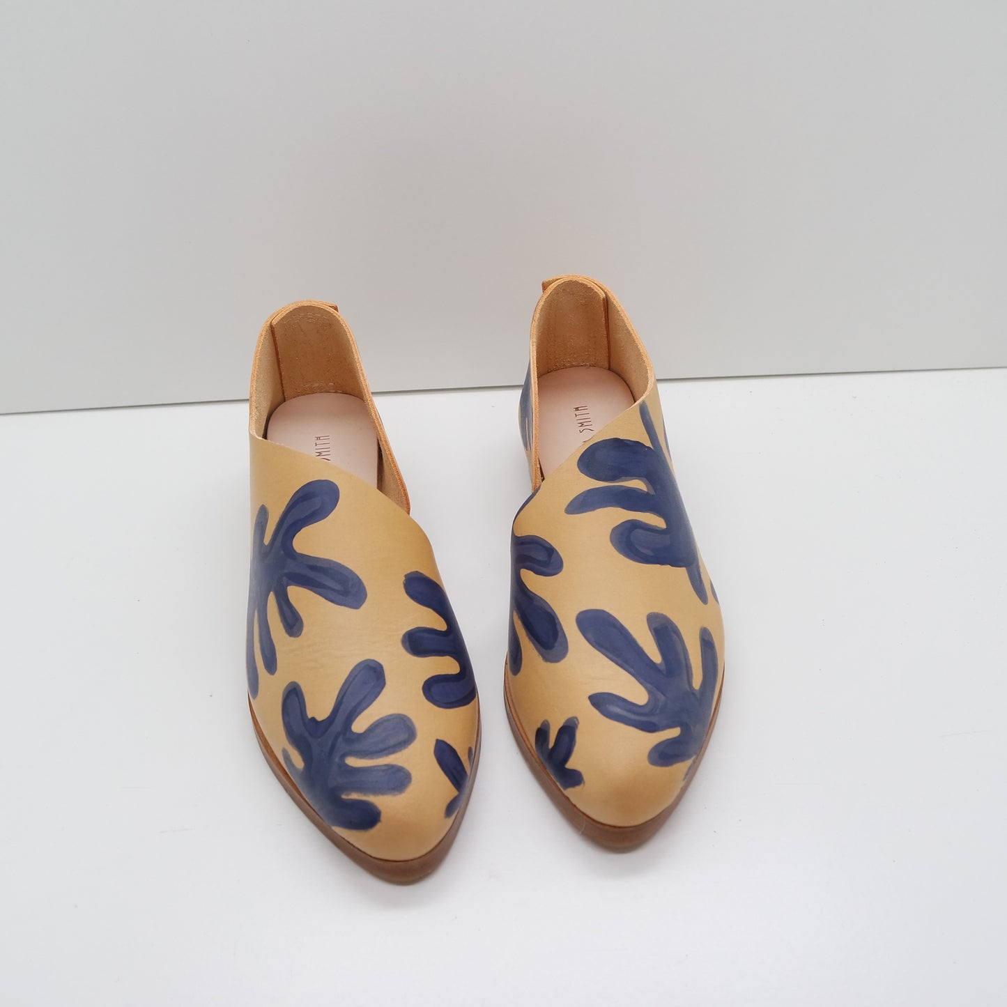 The Kim is our translation of our best selling classic Sandy made on the same last but in a new method. It is designed to follow the curves of the foot and highlighting the inner arch for a perfect flat for daily wear.