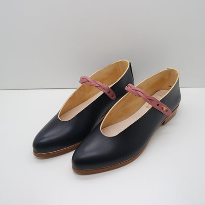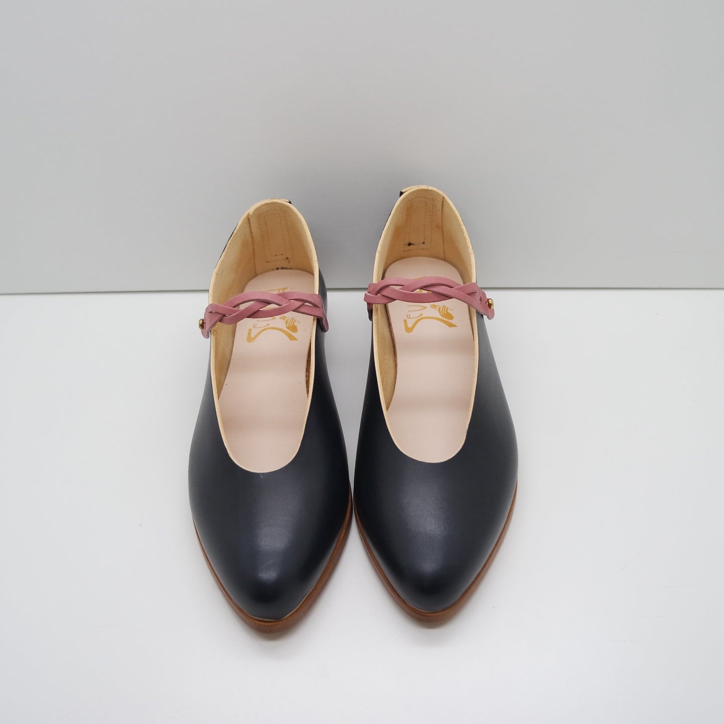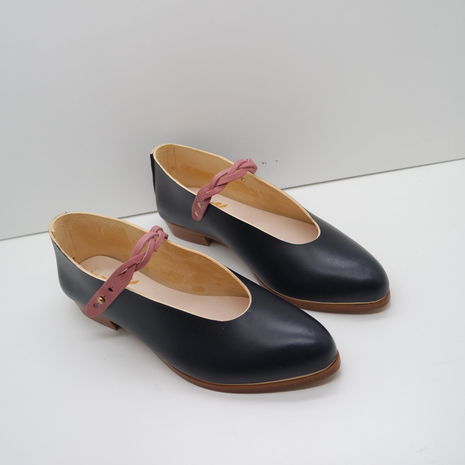 The Pepa is a more open version of our other mary janes and feature a hand braided strap.