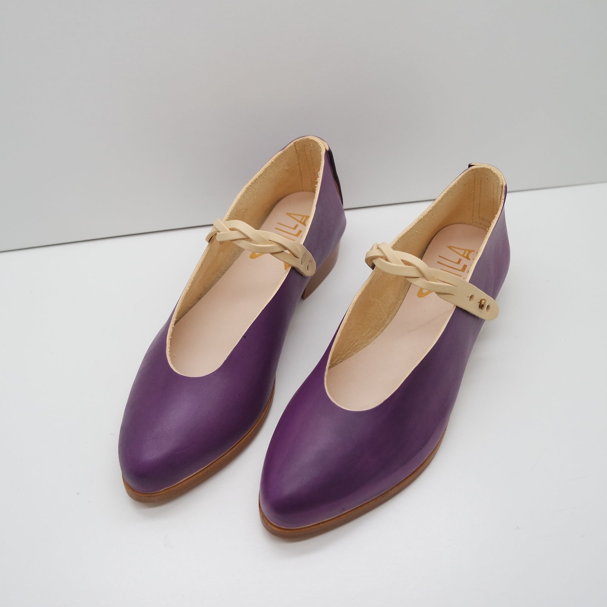 The Pepa is a more open version of our other mary janes and feature a hand braided strap.
